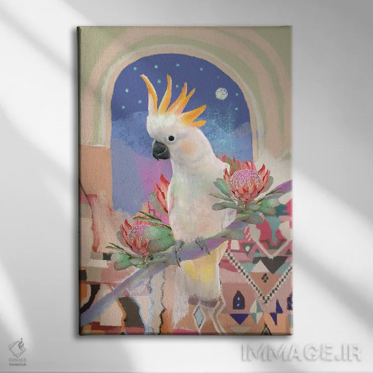 در «کاکاتوی تاجزرد» اثرِ «امبر سامرست»، حضور حیوانات فضا را صمیمیتر و دعوتکنندهتر نشان میدهد؛ برای کافههای کوچک و صمیمی انتخابی خوشسلیقه است. برای دیوار گالریوار هم گزینهٔ خوبیست.