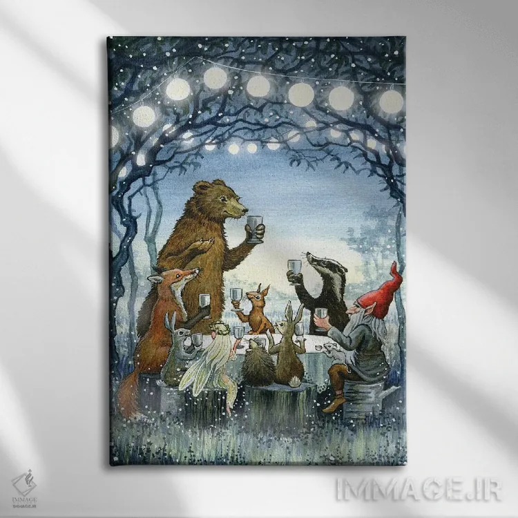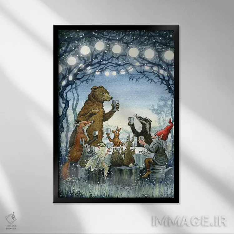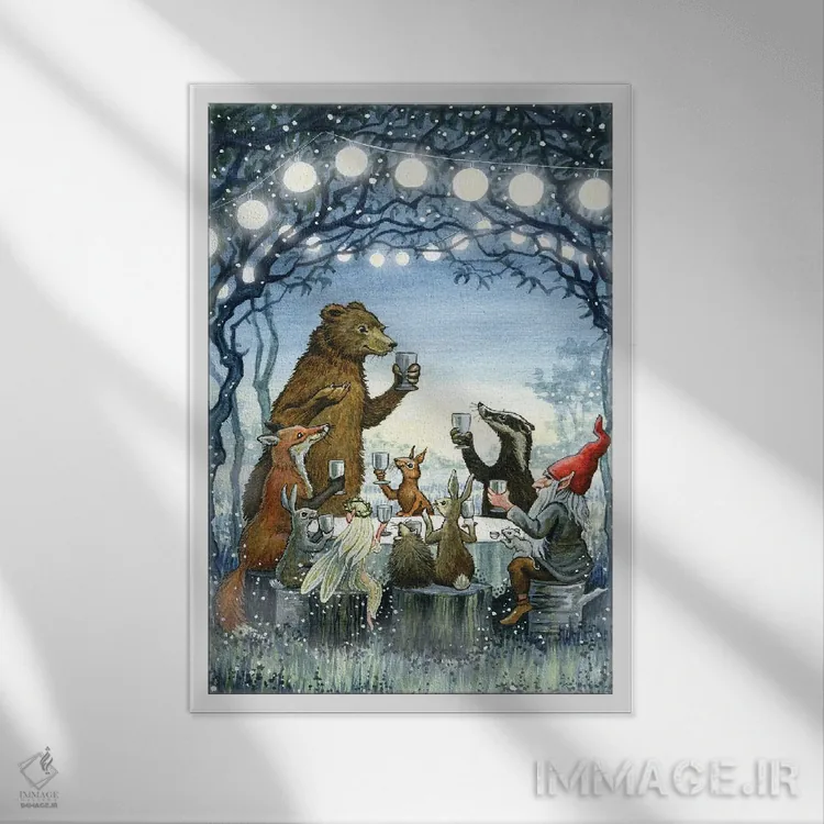«ضیافت مهتابی» اثرِ «آسترید شِکلز» با سبکِ دکوراتیو، به فضا ریتم میدهد و آن را از یکنواختی بیرون میآورد.
