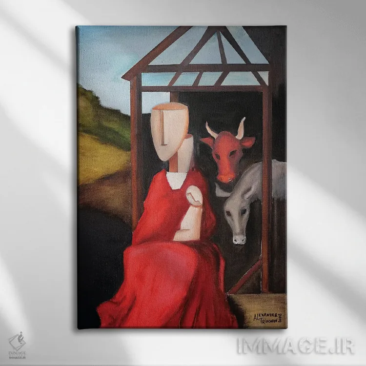 تابلو خانواده من اثر الکساندر تریفونوف - نمای نزدیک بافت بوم
