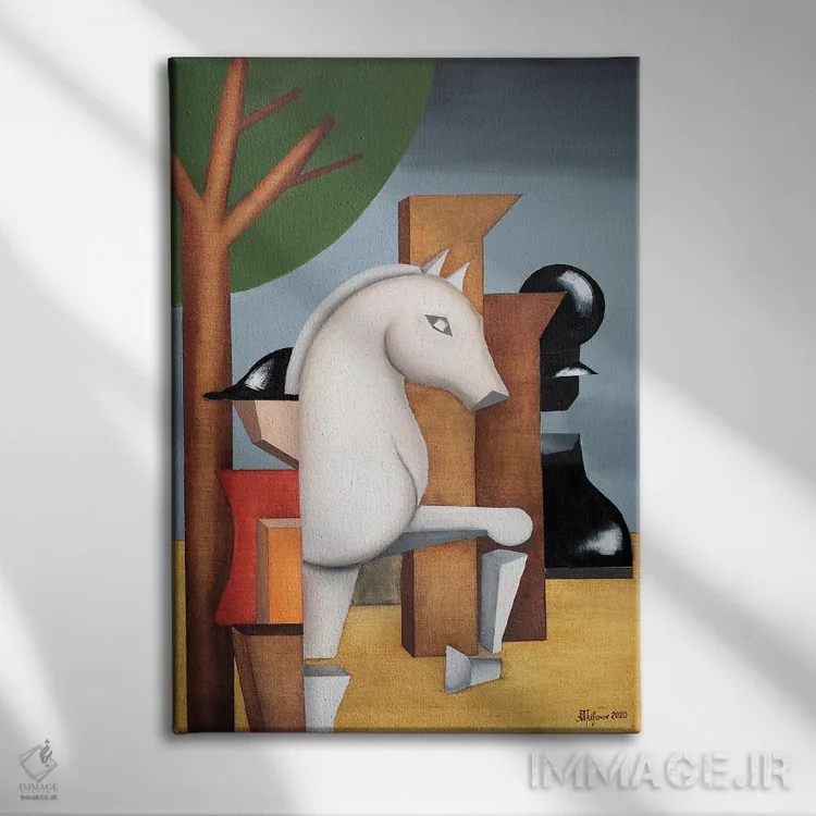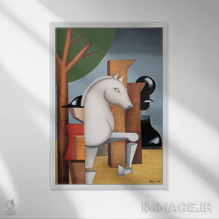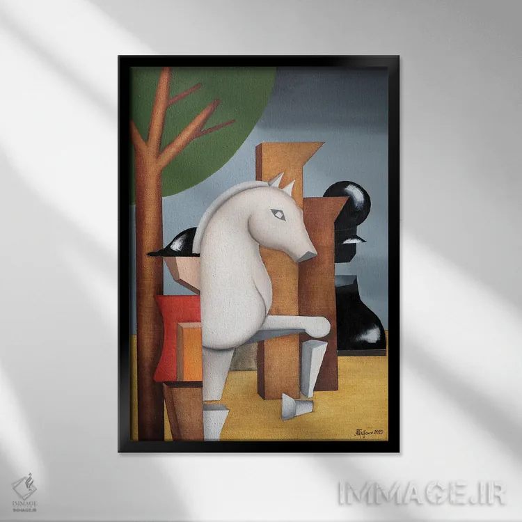 براساس پالت ترکیبی اثر، قاب تیک گرم (چوبی) پیشنهاد اول است و مشکی مات (فریم متوسط) مکمل. برای سفارشهای پروژهای با ابعاد و قابهای اختصاصی با ایماژ در تماس باشید.
