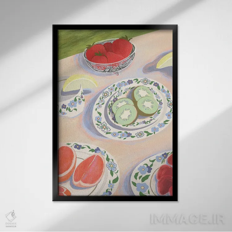 براساس پالت ترکیبی اثر، قاب تیک گرم (چوبی) پیشنهاد اول است و مشکی مات (فریم متوسط) مکمل. برای سفارشهای پروژهای با ابعاد و قابهای اختصاصی با ایماژ در تماس باشید.