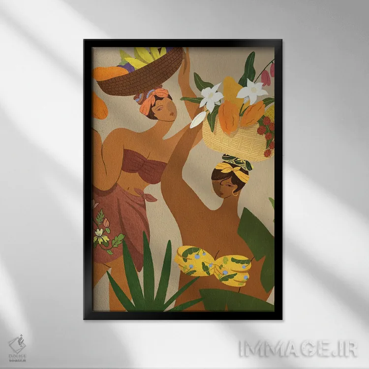 براساس پالت ترکیبی اثر، قاب تیک گرم (چوبی) پیشنهاد اول است و مشکی مات (فریم متوسط) مکمل.