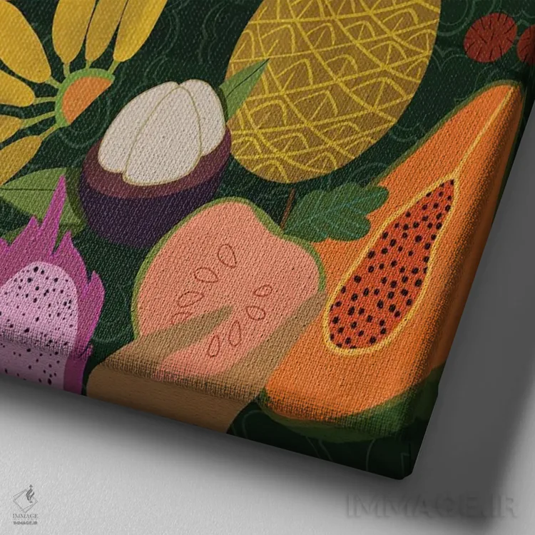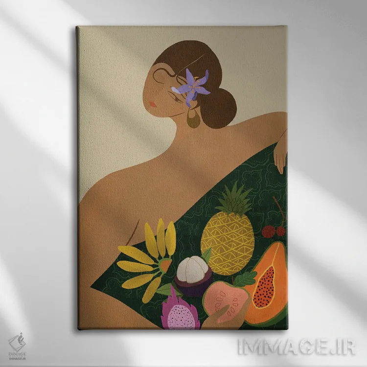 این تابلو با عنوان «فروشندهٔ میوه» اثرِ «آرتی گوآوا»، حسِ گرم و صمیمی به فضا میدهد.
