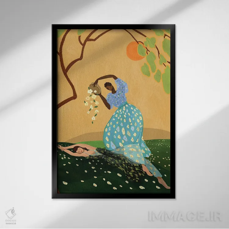 براساس پالت ترکیبی اثر، قاب تیک گرم (چوبی) پیشنهاد اول است و مشکی مات (فریم متوسط) مکمل.
