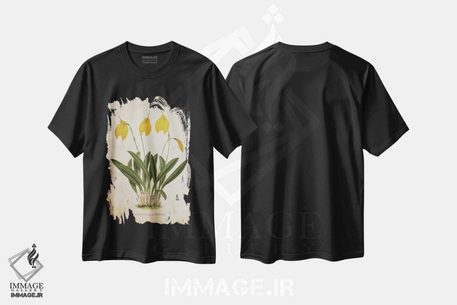 تیشرت طرح دار گل ارکیده اثر پیکسل کهنه