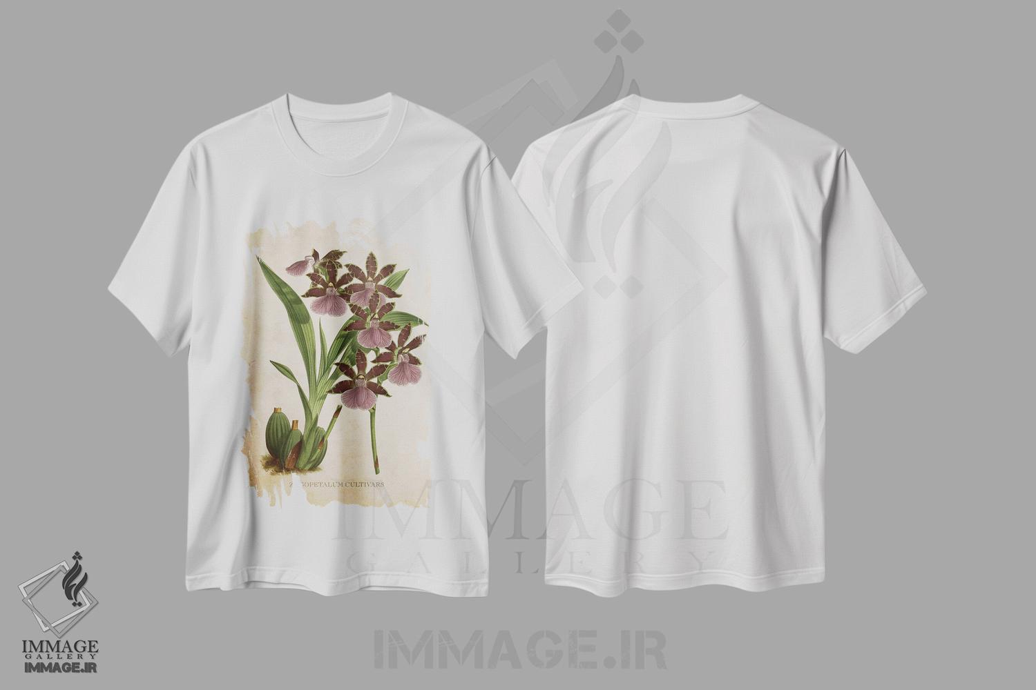 تیشرت طرح دار گل ارکیده اثر پیکسل کهنه