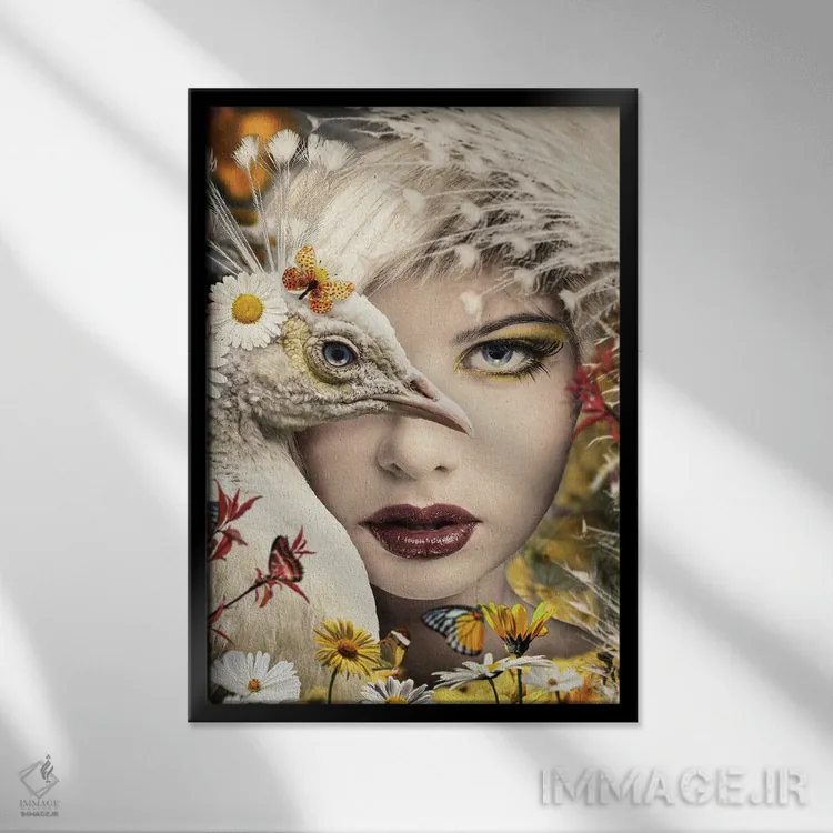 تابلو زن طاووس‌نما اثر آدریان ویریو - نمای قاب‌دار مشکی