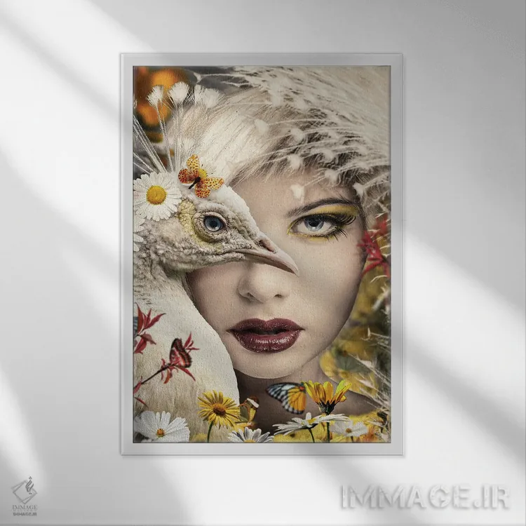 تابلو زن طاووس‌نما اثر آدریان ویریو - نمای قاب‌دار سفید