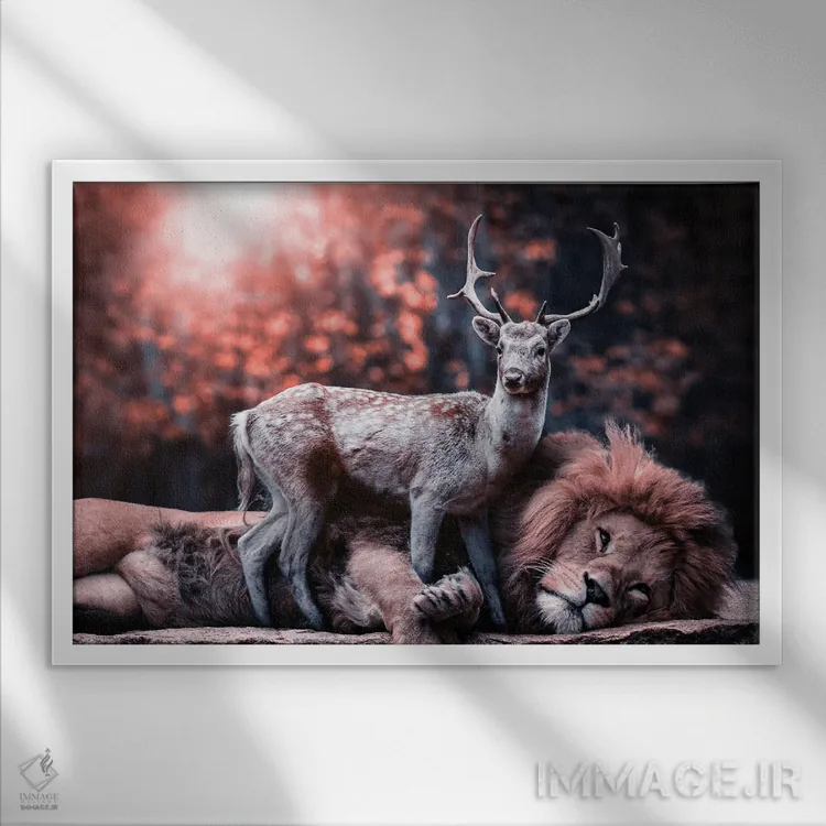 تابلو شیر و گوزن دوست شدند اثر آدریان ویریو - نمای پرسپکتیو محصول