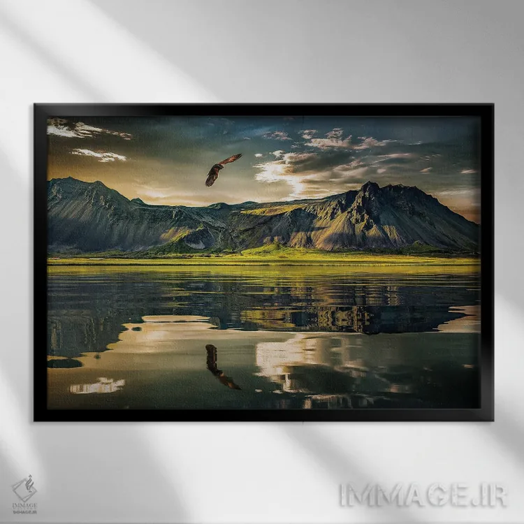 تابلو عقاب در طبیعت و بازتاب کوهها در دریاچه اثر آدریان ویریو