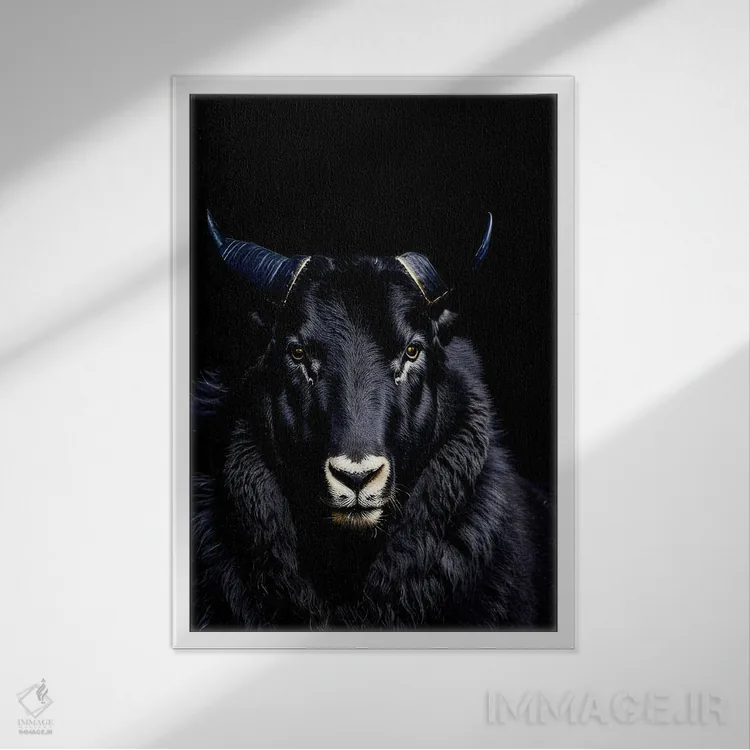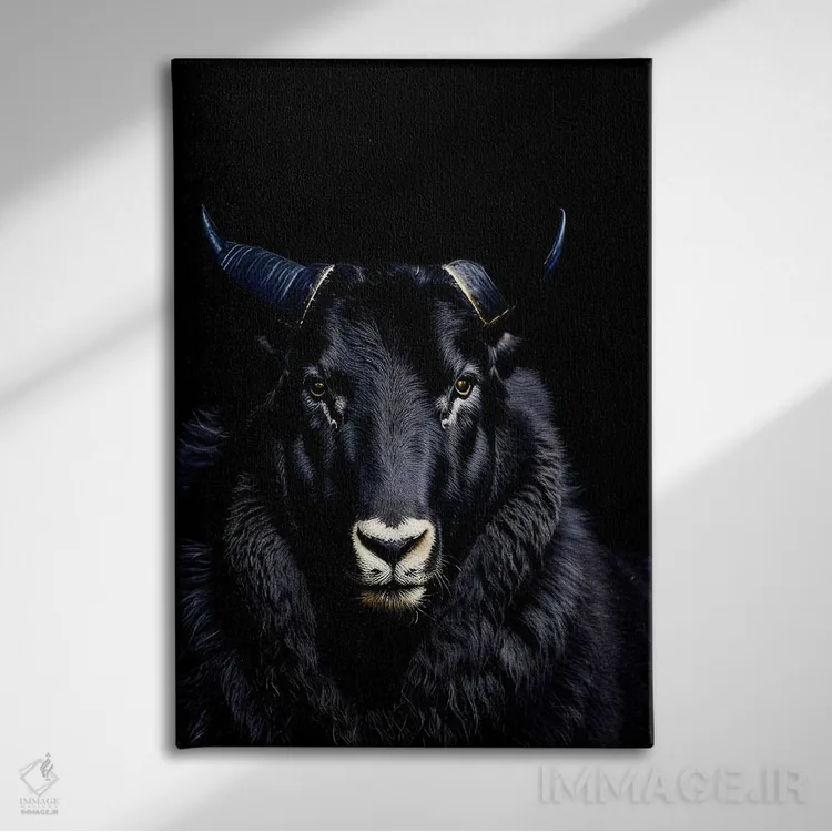 تابلو قوچ با شاخهای بزرگ روی پسزمینه سیاه اثر آدریان ویریو