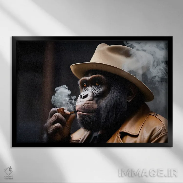 تابلو Hat On Head And Elegantly Dressed, Animal,پرتره گوریل در حال سیگار کشیدن با کلاه و لباس شیک اثر آدریان ویریو