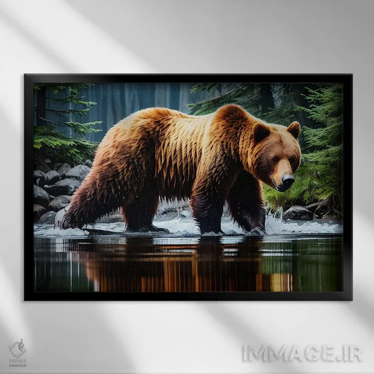تابلو خرس در آب اثر آدریان ویریو - نمای قاب‌دار مشکی