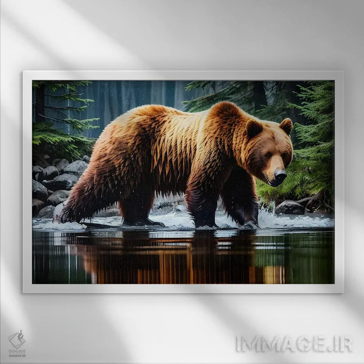 تابلو خرس در آب اثر آدریان ویریو - نمای قاب‌دار سفید