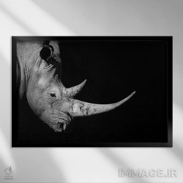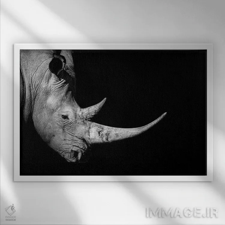 تابلو دکوراتیو نمای نیم رخ کرگدن، سیاه وسفید اثر آدریان ویریو