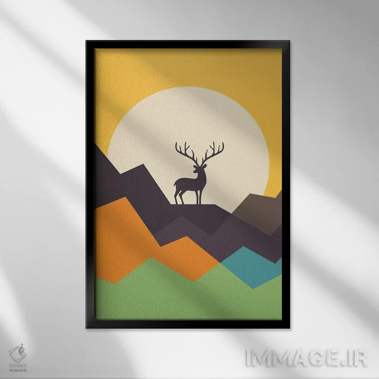 تابلو گوزن اثر اندی وستفِیس - نمای قاب‌دار مشکی