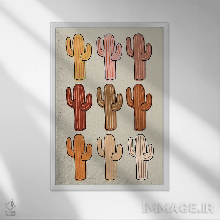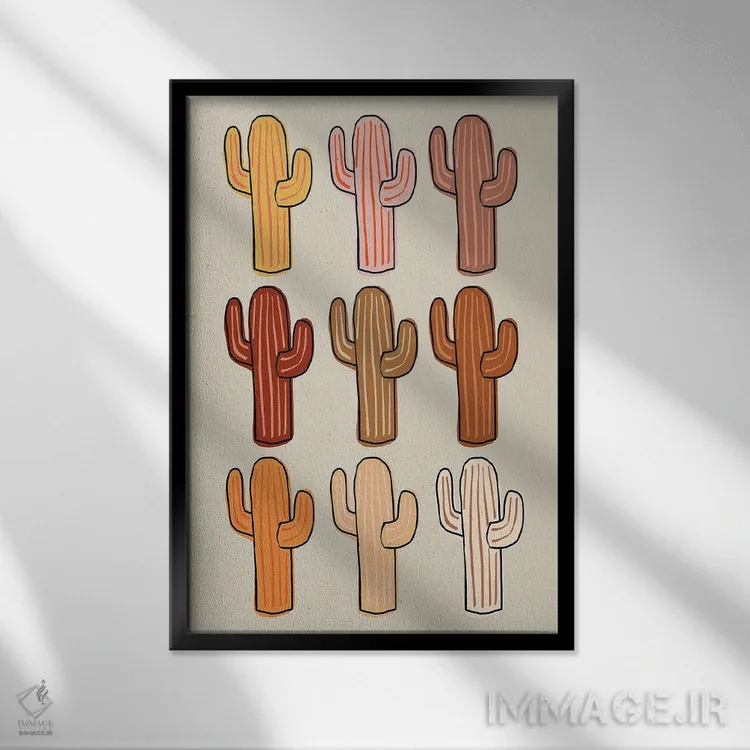 برای دیواری که میخواهید نرمتر دیده شود، «کاکتوسهای متنوع» اثرِ «اروویند پرینتس» جزئیات نزدیک را چشمنواز نشان میدهد؛ برای کنار میز آرایش یا کنسول انتخابی خوشسلیقه است. فضا را شلوغ نمیکند؛ فقط لطیفترش میکند.