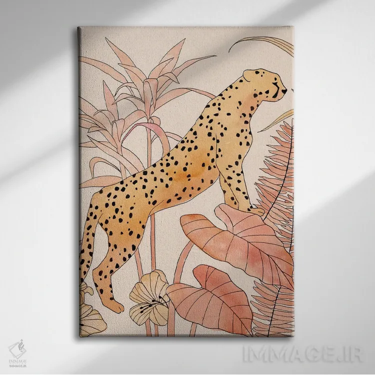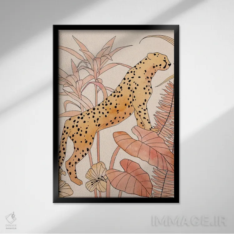 این اثر با عنوان «یوزپلنگ سرخگونه II» اثرِ «آنی وارن» در کنار رنگهای خنثی، تضاد دلچسبی میسازد؛ برای خانههایی با چوب و پارچههای گرم انتخابی خوشسلیقه است. به دیوار، قصه میدهد—اما قصهای آرام و شیک.