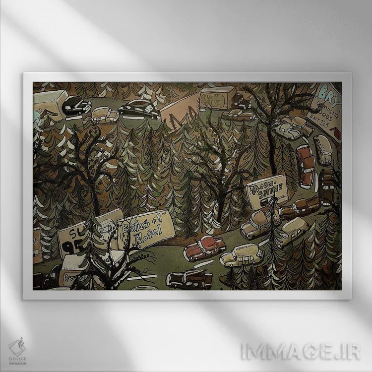 براساس پالت ترکیبی اثر، قاب بلوط روشن (چوبی) پیشنهاد اول است و استخوانی ملایم مکمل. برای سفارشهای پروژهای با ابعاد و قابهای اختصاصی با ایماژ در تماس باشید.