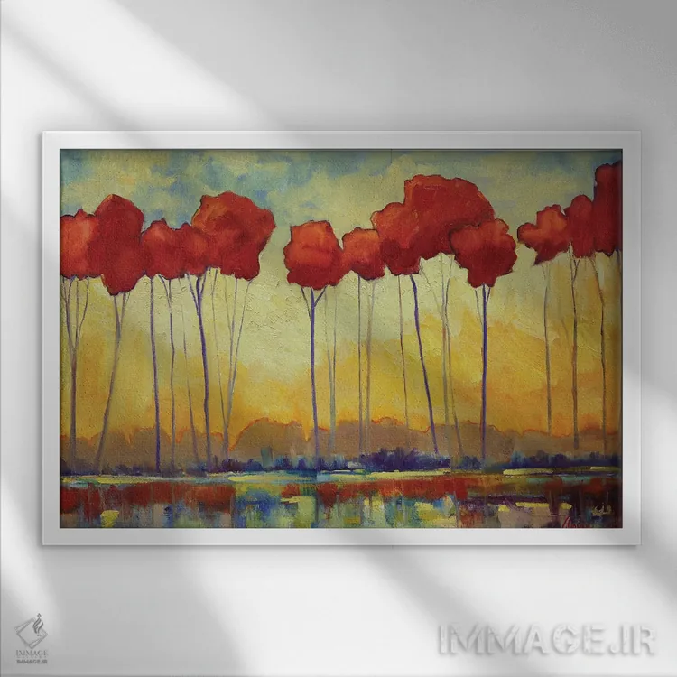 براساس پالت گرم اثر، قاب تیک گرم (چوبی) پیشنهاد اول است و مشکی مات (فریم متوسط) مکمل. برای سفارشهای پروژهای با ابعاد و قابهای اختصاصی با ایماژ در تماس باشید.