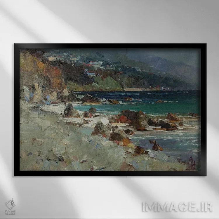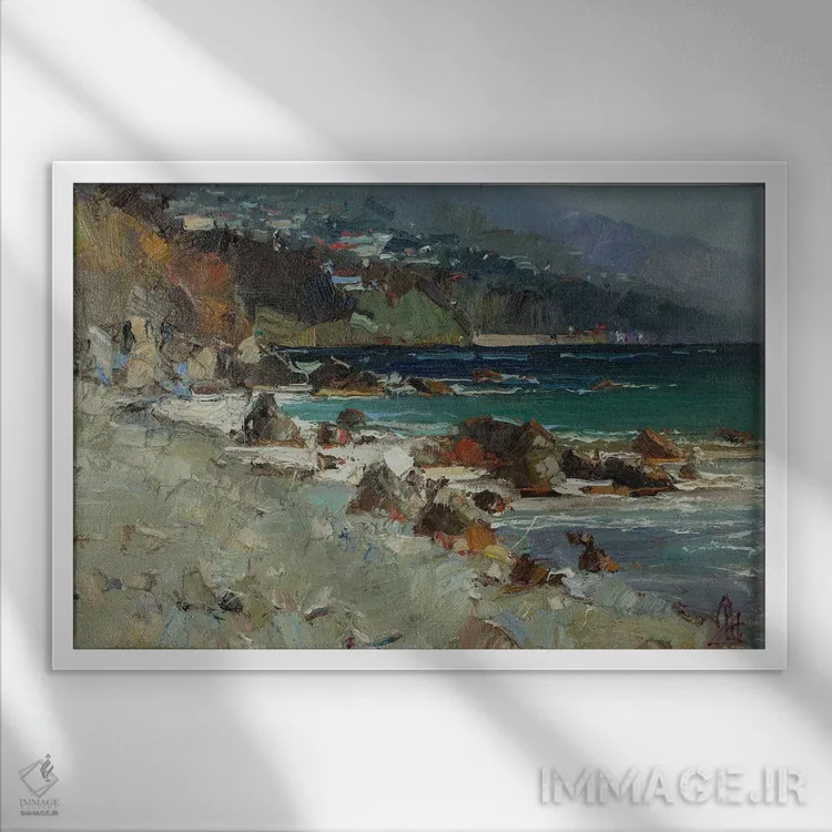 براساس پالت ترکیبی اثر، قاب بلوط روشن (چوبی) پیشنهاد اول است و استخوانی ملایم مکمل. برای سفارشهای پروژهای با ابعاد و قابهای اختصاصی با ایماژ در تماس باشید.