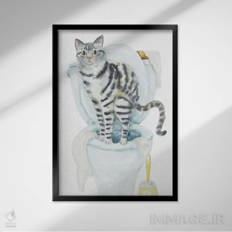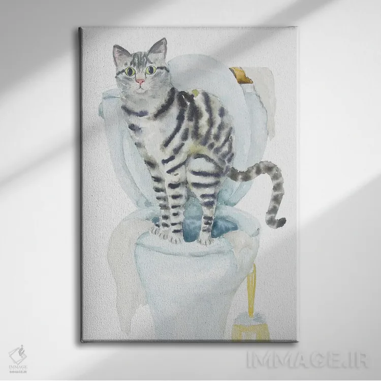 تابلو گربهٔ تیبی خاکستری روی توالت اثر آلکسی دیمیتریویچ شمیروف - نمای روبه‌رو روی دیوار