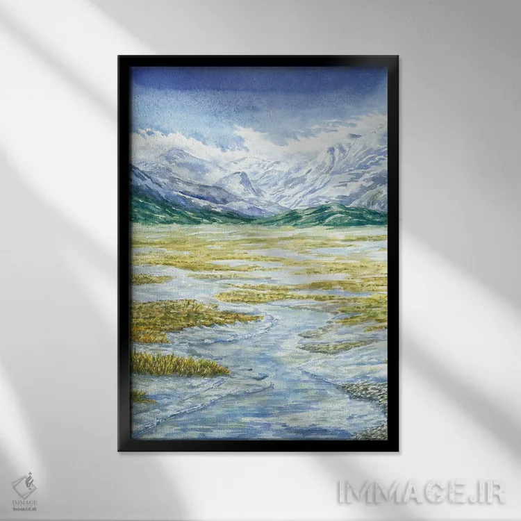 براساس پالت ترکیبی اثر، قاب تیک گرم (چوبی) پیشنهاد اول است و مشکی مات (فریم متوسط) مکمل. برای سفارشهای پروژهای با ابعاد و قابهای اختصاصی با ایماژ در تماس باشید.