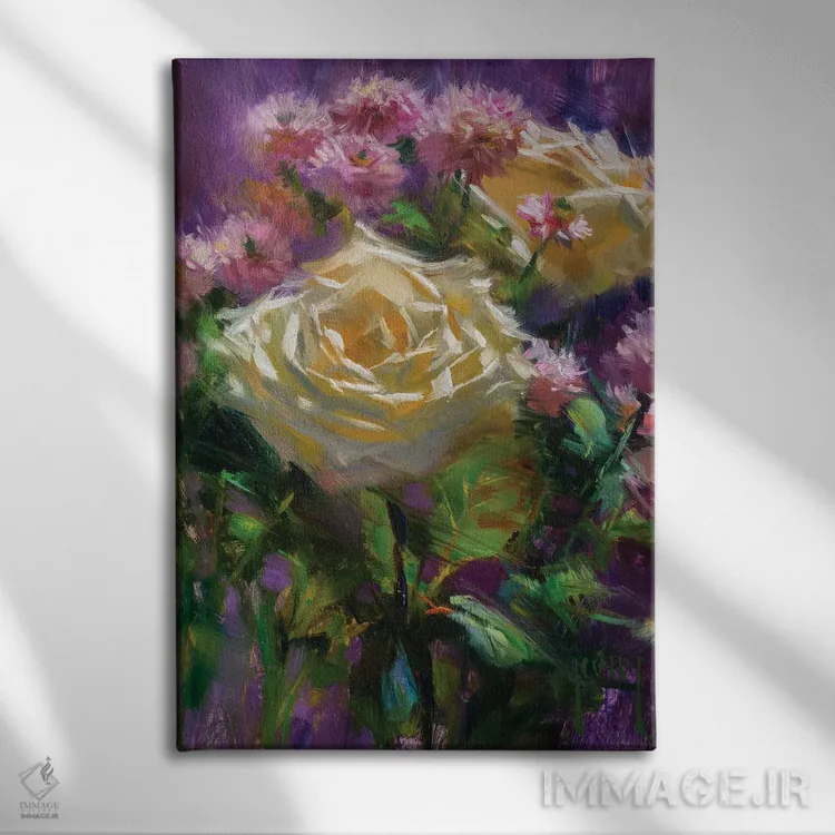 طراحی بوم گالری ایماژ بهگونهای است که اثر روی دیوار «پرداختشده» و حرفهای دیده شود—نه پرزرقوبرقِ بیپایه؛ بلکه دقیق و خوشپرداخت. بافت ظریف کنواس باعث میشود حس اثر هنری را در نگاه نزدیک نگه میدارد. در بافت ظریف کنواس، به تصویر شخصیت میدهد بدون اینکه شلوغ کند بدون اغراق؛ فقط دقیقتر. حاصل کار، یک تابلو خوشنشین است که هم از دور اثرگذار است و هم از نزدیک خوشخوان؛ اگر محیط کمینهگرا است، همین پرداخت تمیز کافی است.