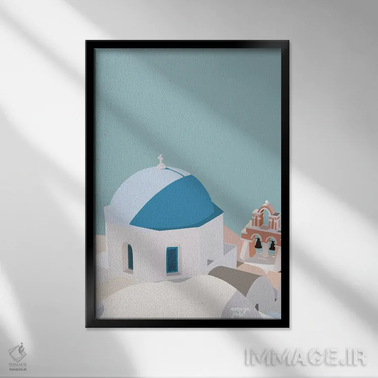 تابلو دکوراتیو آبی سانتورینی اثر آمایا
