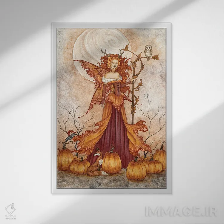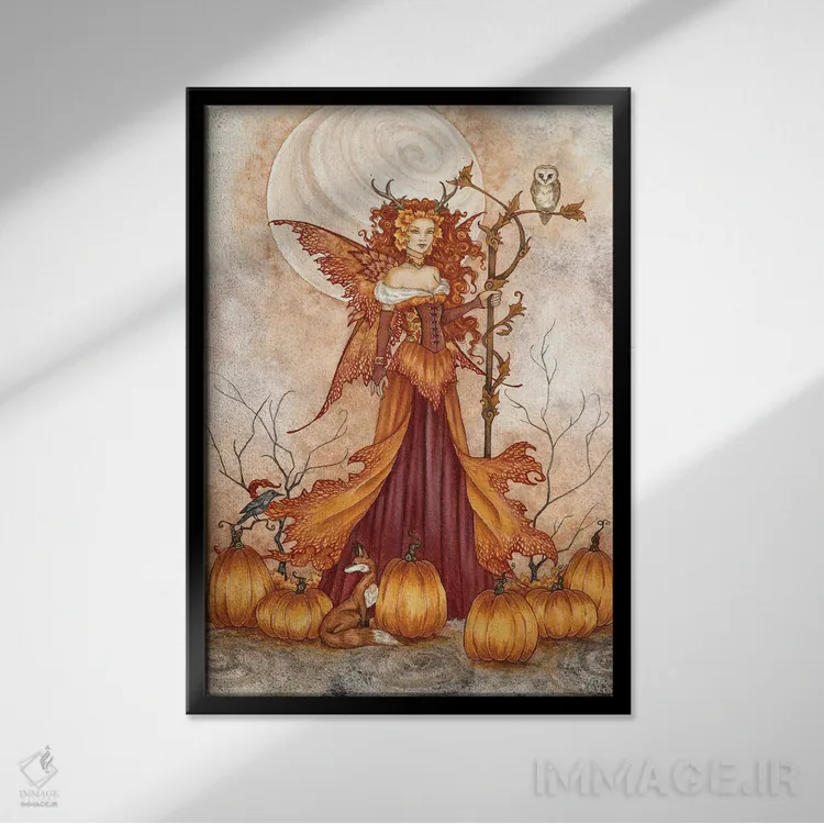 این تابلو با عنوان «ملکهٔ کدو تنبل» اثرِ «امی براون»، حسِ گرم و صمیمی به فضا میدهد.