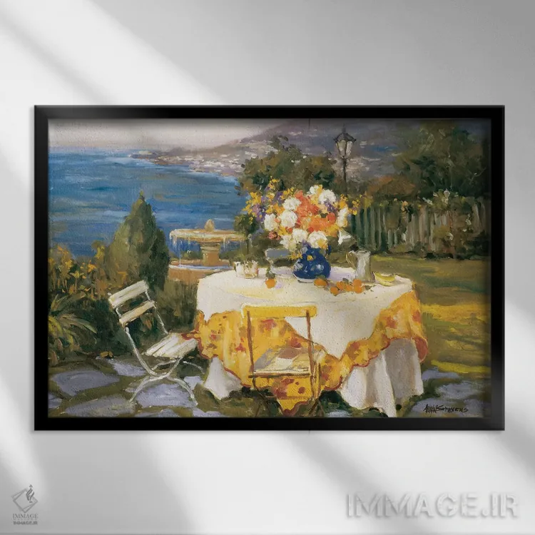 در «نور صبحگاهی» اثرِ «الین استیونز»، گلها و گیاهان برای دیوارهای ساده، یک لطافتِ دقیق میسازد؛ برای هدیه دادن انتخابی خوشسلیقه است. با قاب روشن یا چوبی، حس طبیعیتری پیدا میکند.