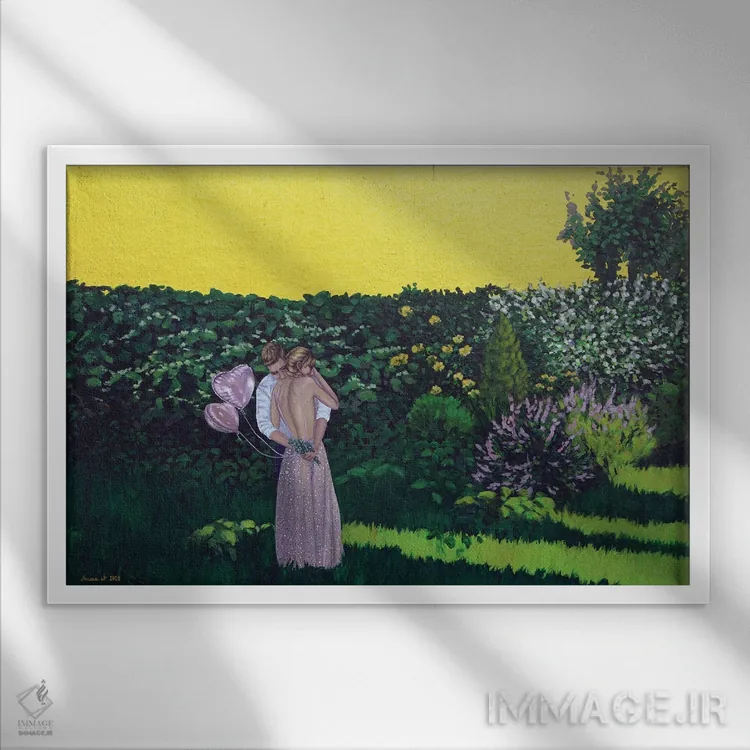 براساس پالت ترکیبی اثر، قاب تیک گرم (چوبی) پیشنهاد اول است و مشکی مات (فریم متوسط) مکمل. برای سفارشهای پروژهای با ابعاد و قابهای اختصاصی با ایماژ در تماس باشید.