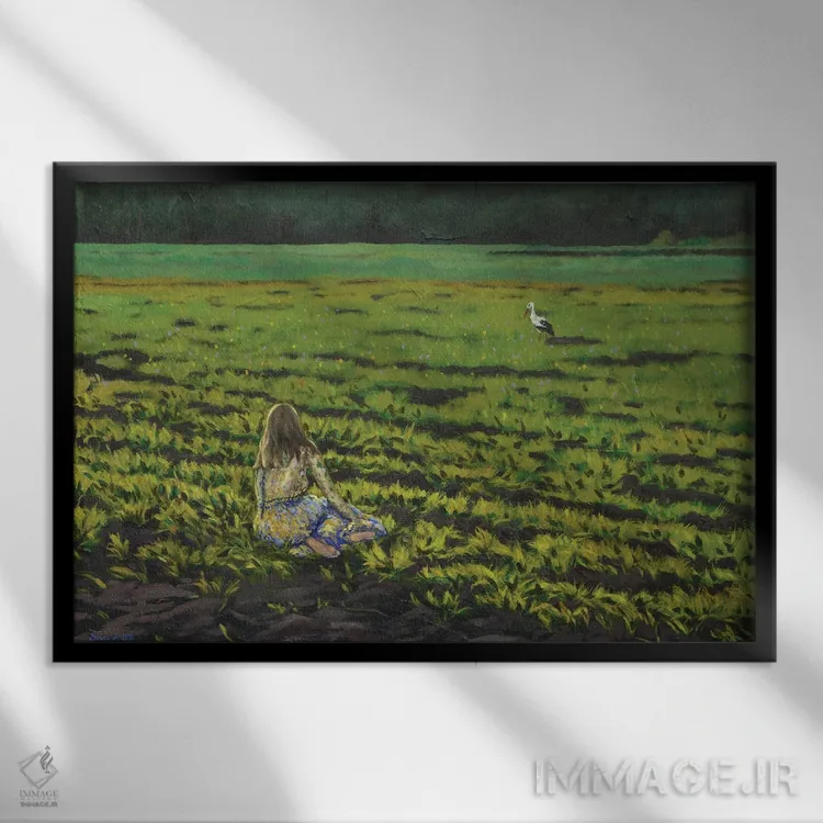 براساس پالت ترکیبی اثر، قاب بلوط روشن (چوبی) پیشنهاد اول است و استخوانی ملایم مکمل. برای سفارشهای پروژهای با ابعاد و قابهای اختصاصی با ایماژ در تماس باشید.