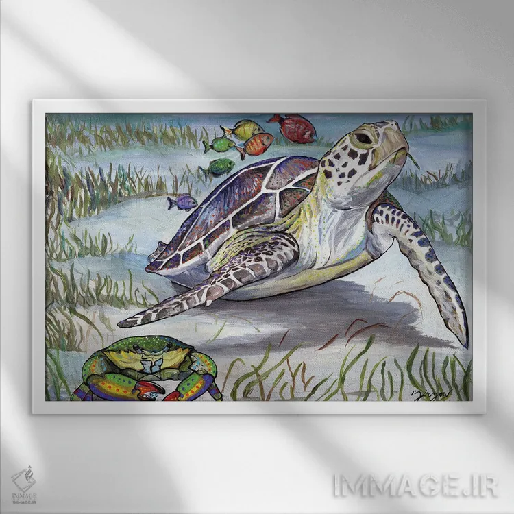 برای دیوارهای ساده، «خرچنگ و جواهر» اثرِ «آماندا زیرزو» حس طبیعت را بیدغدغه وارد خانه میکند؛ برای فضاهای روستیک یا بوهو انتخابی خوشسلیقه است. برای دیوار گالریوار هم گزینهٔ خوبیست.