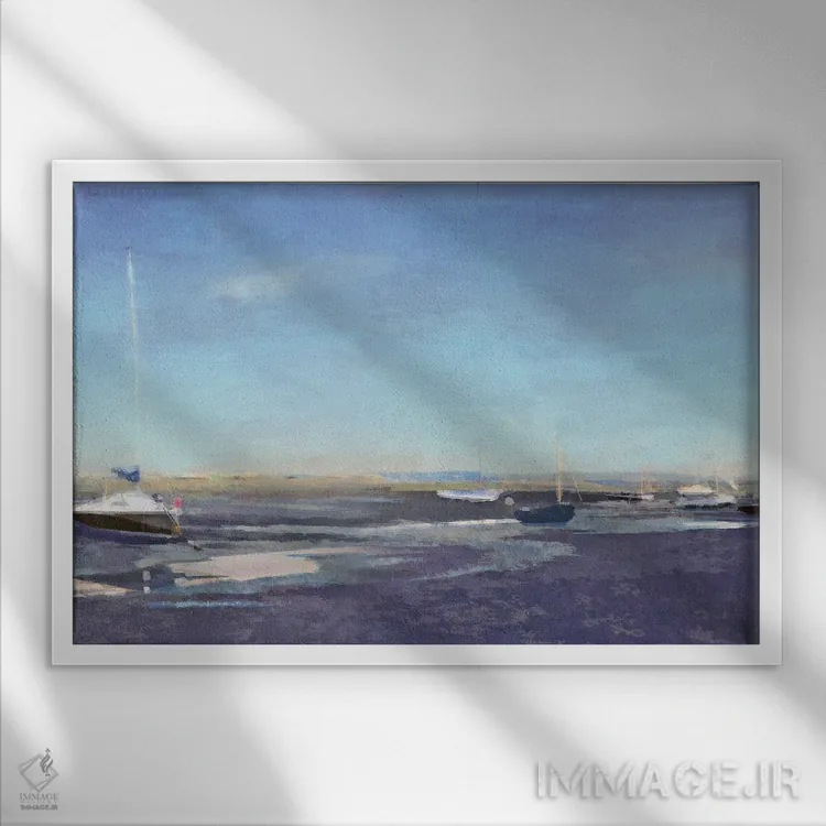 براساس پالت سرد اثر، قاب سفید مات (فریم باریک) پیشنهاد اول است و نقرهای برسخورده (متالیک) مکمل. برای سفارشهای پروژهای با ابعاد و قابهای اختصاصی با ایماژ در تماس باشید.