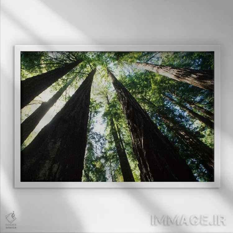 تابلو درختان سرخ‌چوب کهنسال ساحلی، پارک ملی مویر وودز، منطقه تفریحی گلدن گیت، مارین کانتی، کالیفرنیا، آمریکا اثر بیل باخمن - نمای قاب‌دار سفید