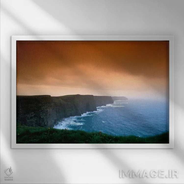 تابلو صخره‌های موهر، شهرستان کلر، استان مانستر، جمهوری ایرلند اثر برنت برگهرم - نمای قاب‌دار سفید