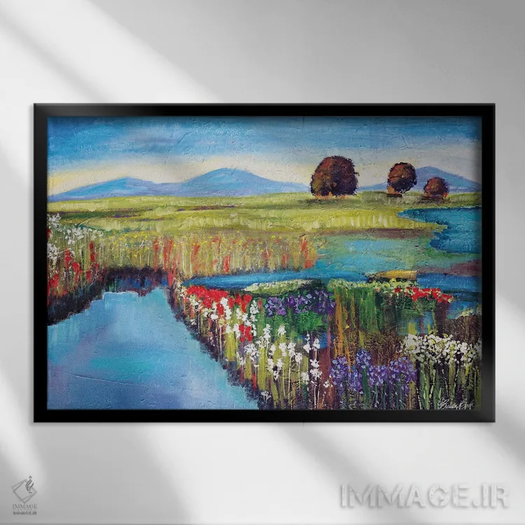 براساس پالت ترکیبی اثر، قاب تیک گرم (چوبی) پیشنهاد اول است و مشکی مات (فریم متوسط) مکمل. برای سفارشهای پروژهای با ابعاد و قابهای اختصاصی با ایماژ در تماس باشید.