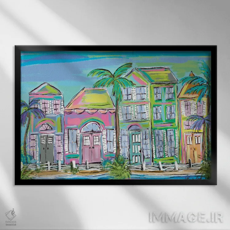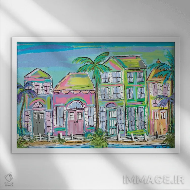 «زندگی جزیرهای» اثرِ «برندا بوش» در فضای دکور ساحلی، کنار پارچههای روشن و اکسسوریهای طبیعی (حصیر/چوب) عالی هماهنگ میشود.