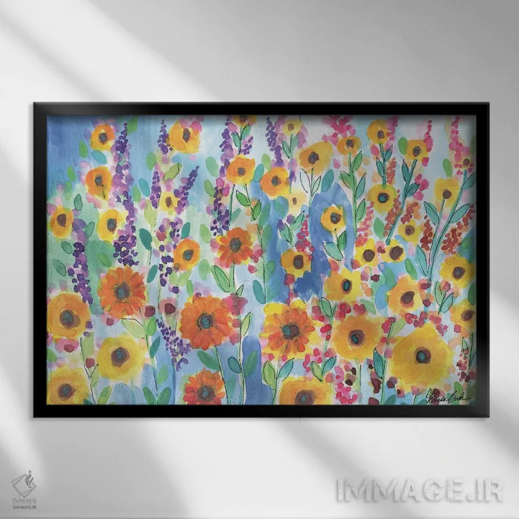 اگر دوست دارید دیوار روشنتر و آرامتر دیده شود، «آفتابگردانها و ختمیها» اثرِ «برندا بوش» چیدمان را از خشکی بیرون میآورد، برای اتاق خواب گزینهٔ مناسبیست. با قاب روشن یا چوبی، حس طبیعیتری پیدا میکند.