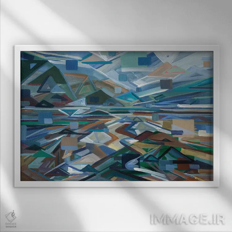 براساس پالت ترکیبی اثر، قاب تیک گرم (چوبی) پیشنهاد اول است و مشکی مات (فریم متوسط) مکمل. برای سفارشهای پروژهای با ابعاد و قابهای اختصاصی با ایماژ در تماس باشید.