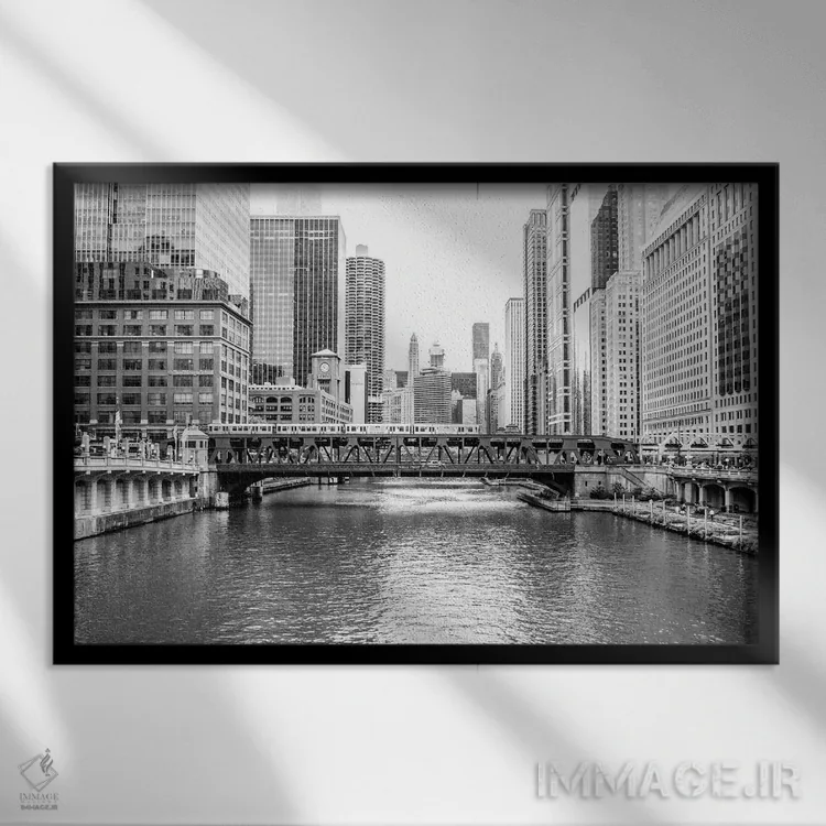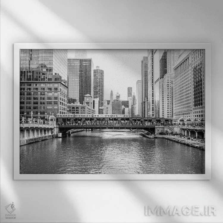 تابلو نمای رودخانه شیکاگو (سیاه و سفید) اثر عکاسی بیل کارسون