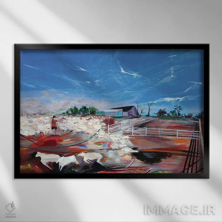 براساس پالت ترکیبی اثر، قاب تیک گرم (چوبی) پیشنهاد اول است و مشکی مات (فریم متوسط) مکمل. برای سفارشهای پروژهای با ابعاد و قابهای اختصاصی با ایماژ در تماس باشید.
