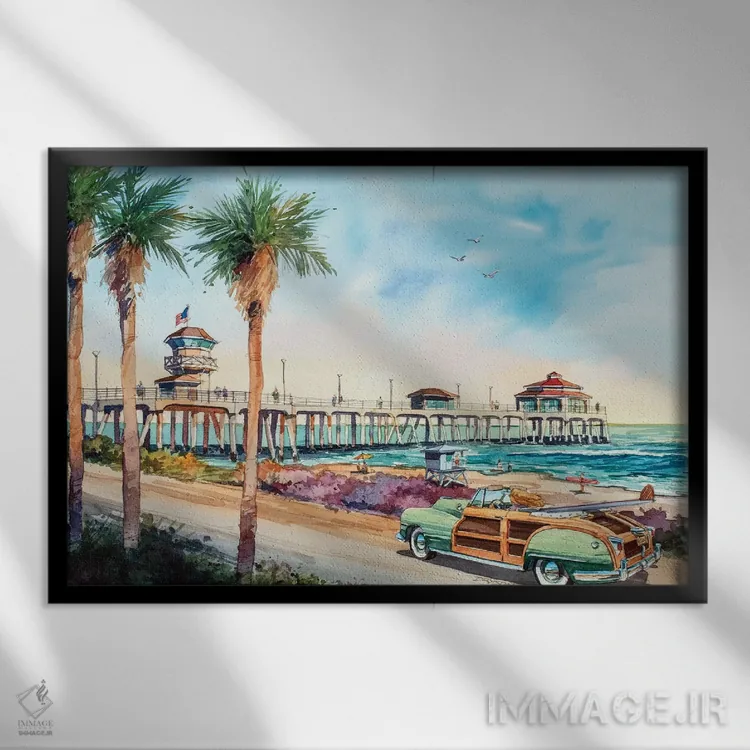اگر دکور شما آرام و روشن است، «گشت و گذار در هانتینگتون بیچ» اثرِ «بیل درایزدیل» با تمِ این اثر و حس ساحلی، دیوار را دلنشینتر میکند.