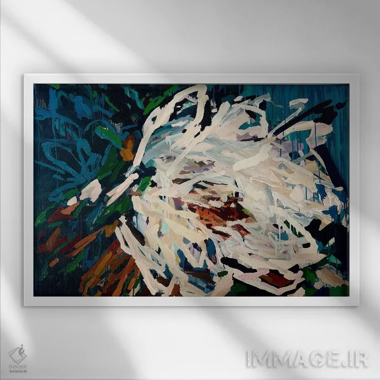 براساس پالت ترکیبی اثر، قاب بلوط روشن (چوبی) پیشنهاد اول است و استخوانی ملایم مکمل. برای سفارشهای پروژهای با ابعاد و قابهای اختصاصی با ایماژ در تماس باشید.