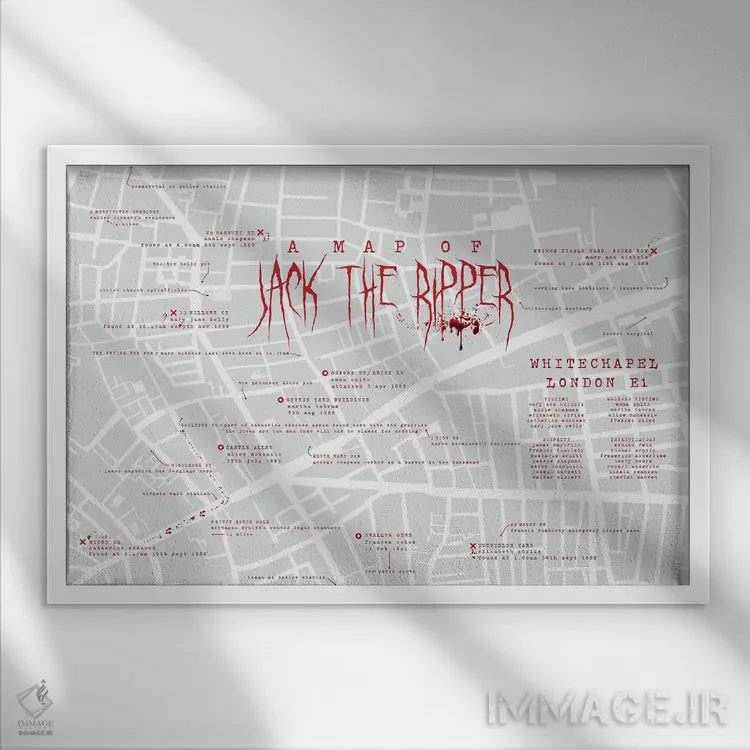 تابلو اینفوگرافیک جک قاتل لندن اثر بیبلیوتوگرافی - نمای قاب‌دار سفید