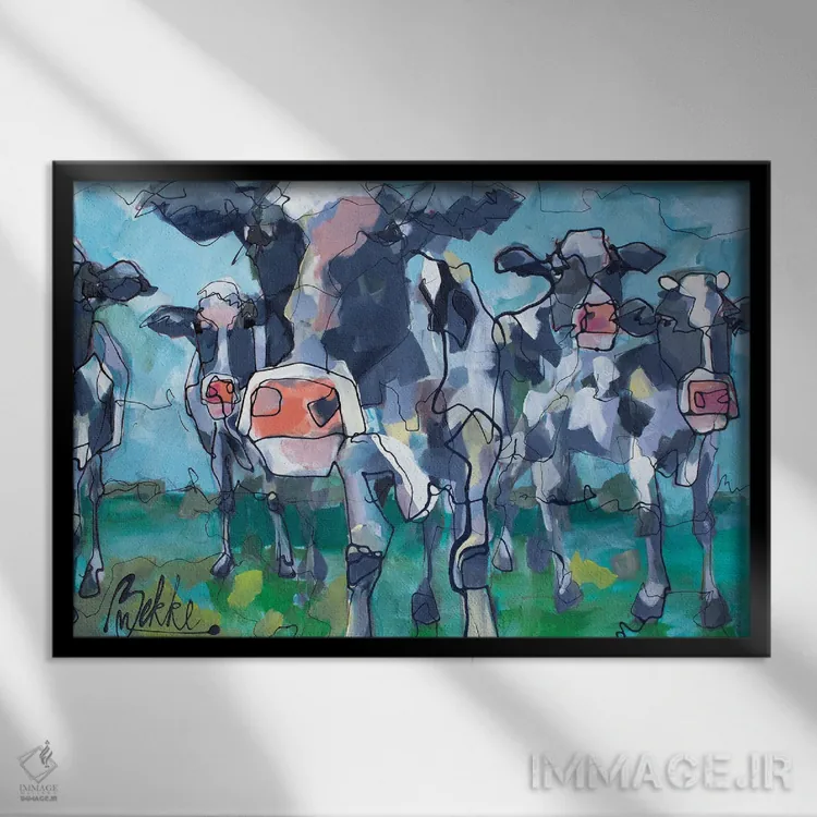 تابلو گاوها اثر ماریکه بکه - نمای قاب‌دار مشکی