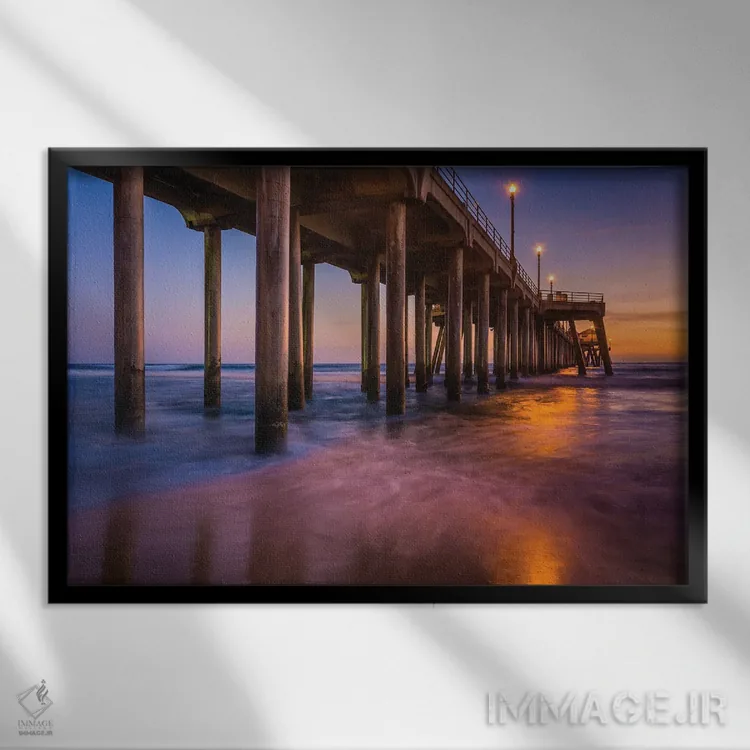 تابلو اسکله هنگام گرگ و میش اثر جان بیلوس - نمای قاب‌دار مشکی