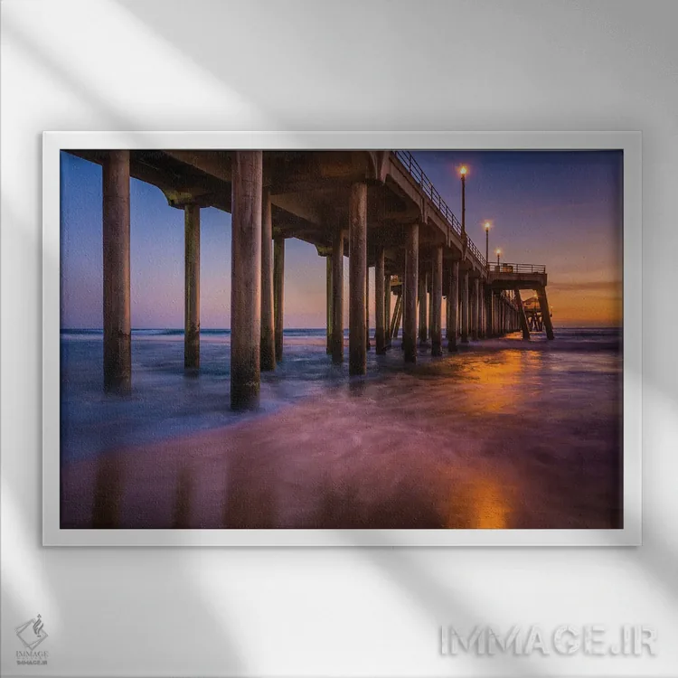تابلو اسکله هنگام گرگ و میش اثر جان بیلوس - نمای قاب‌دار سفید