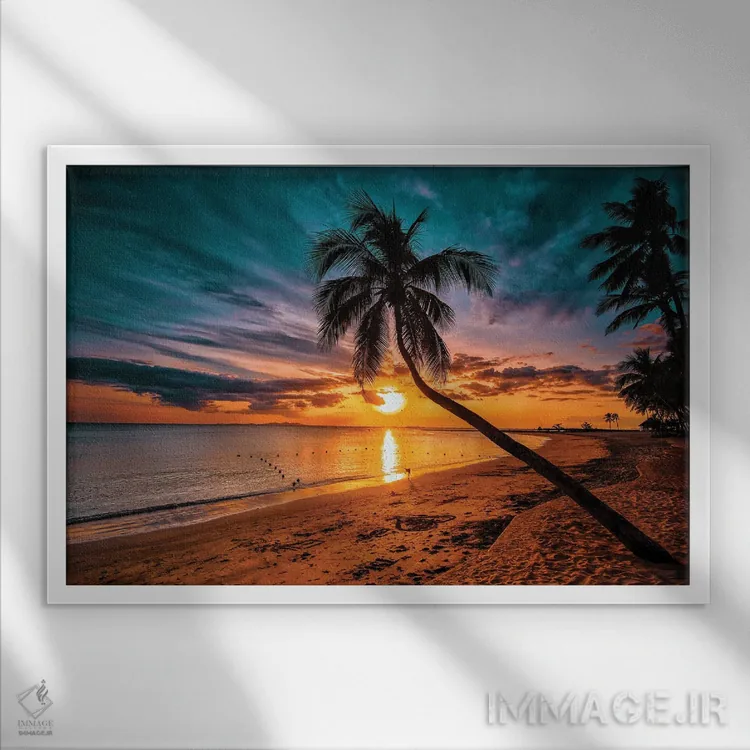 تابلو غروب گرمسیری اثر بن مولدر - نمای قاب‌دار سفید